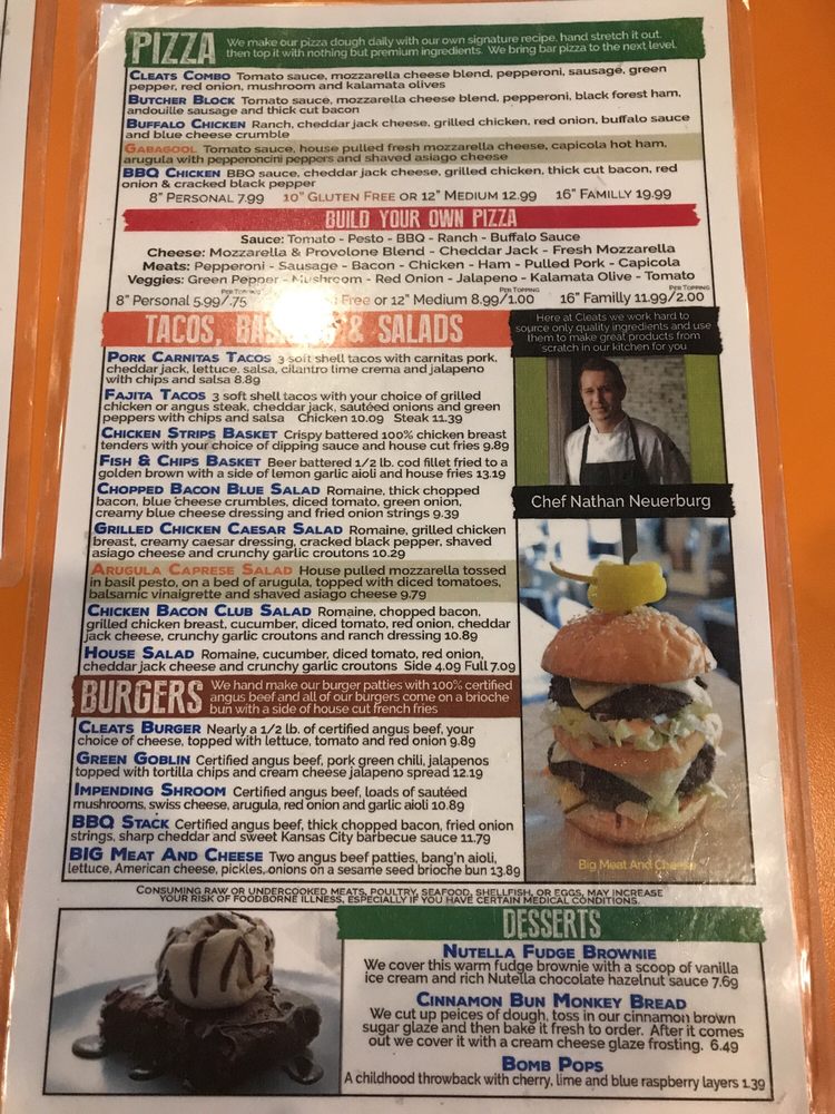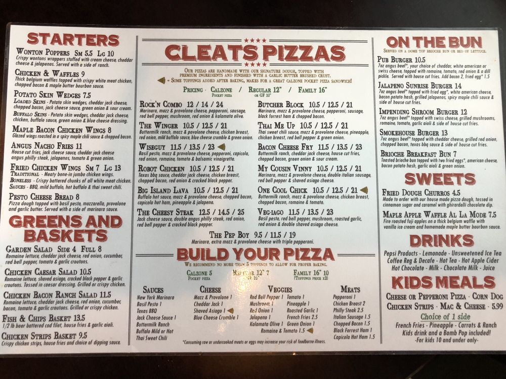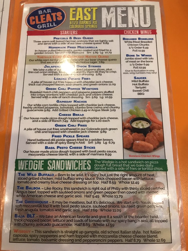 Cleats Bar & Grill East Menu (Update 2025)